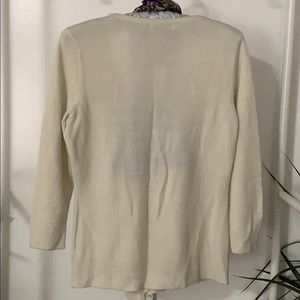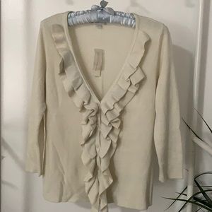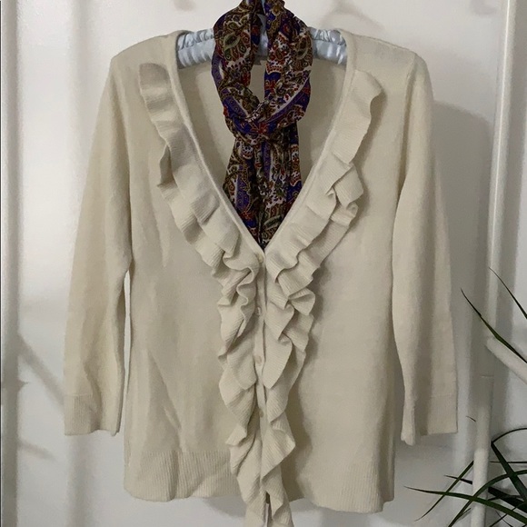 Ruffled 3/4 sleeves cardigan. Scarf excluded.