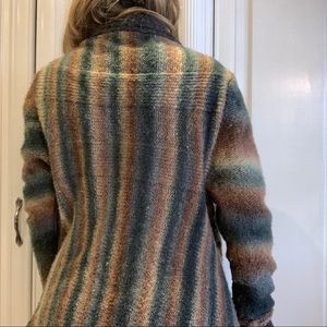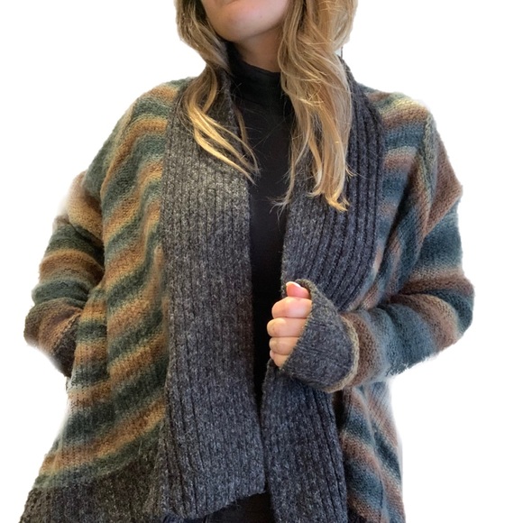 This multicolor cardigan is perfect to pair with jeans or leggings. Very warm. Not itchy.