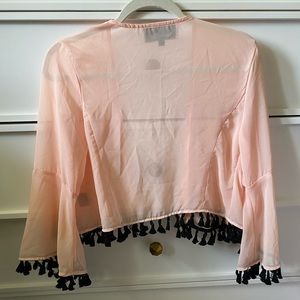 Beautiful sheer coral cardi with blk mini tassels