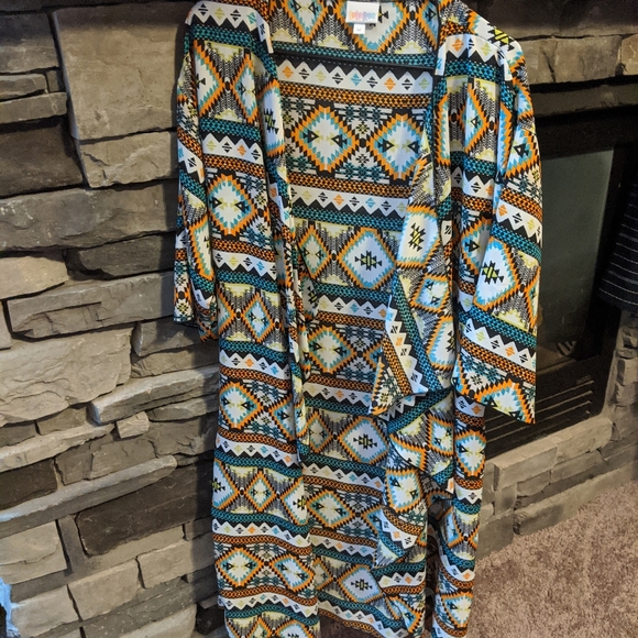 Long multi colored cardigan. Light weight. General size, fits like a large