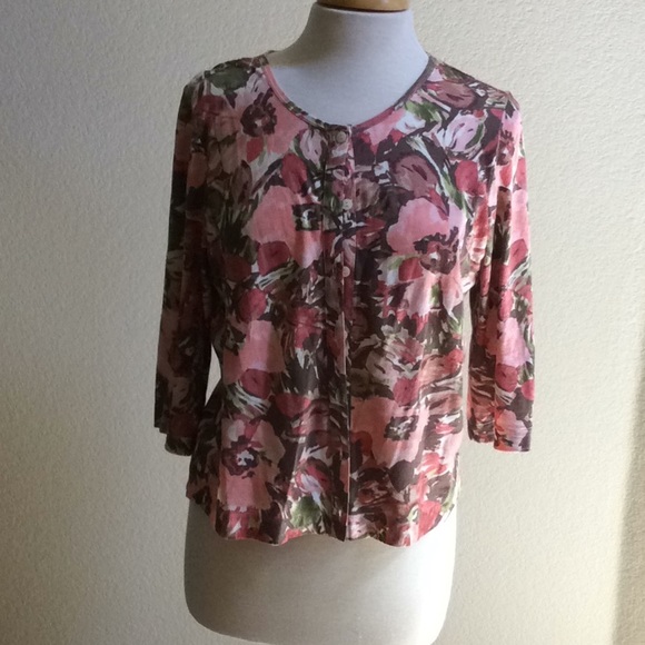 3/4 sleeve button down cardigan in beautiful floral print. Very lightweight.