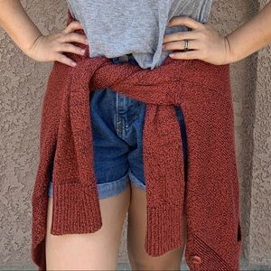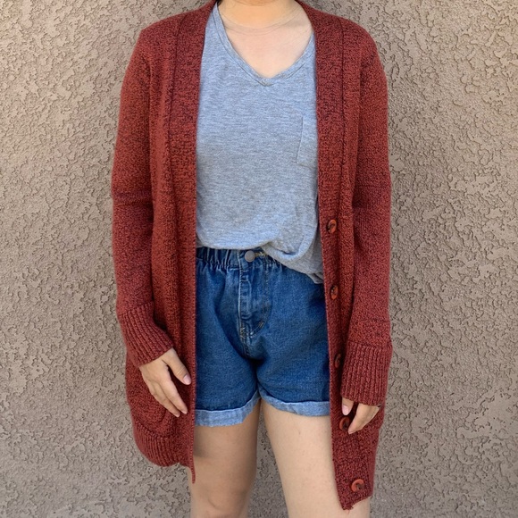 Cozy red cardigan, light enough to wear for the fall. Can be layered for warmer wear. Slightly used but still in great condition.