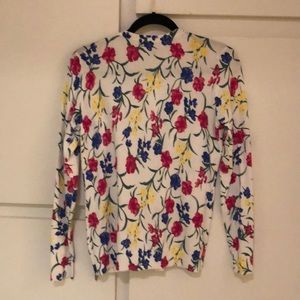 EUC Vibrant pink, blue, yellow and green blooms cascading this button-front crewneck cardigan from Karen Scott