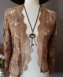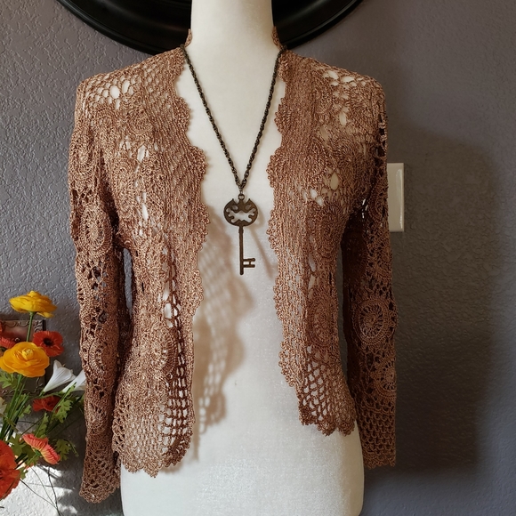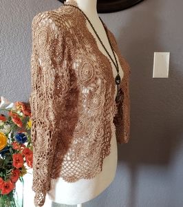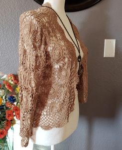 Vintage knit top worn over a tank top or blouse. A soft, pretty way to top off sleeveless styles. Cover up. Three quarter sleeves. No tears no rip. No fade. Never worn.Missing size tag. Size Small. In great condition. Beautiful