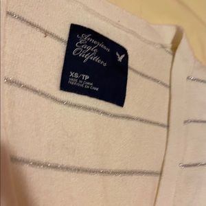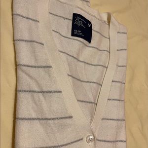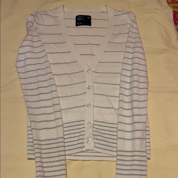 Cream cardigan with silver sparkle stripes