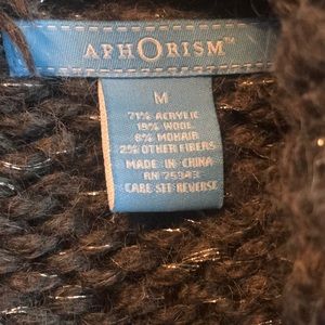 Warm, elbow length cardigan. 71 % acrylic, 19% wool, 8 % mohair. Gray with flecks of silver thread throughout. Very festive for the holidays when you need that extra layer!! Non smoking home. Good condition.