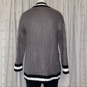 Super cute ladies cardigan in Excellent condition! Gray cardigan with black and white details and 2 front pockets. From a smoke free home. :)
