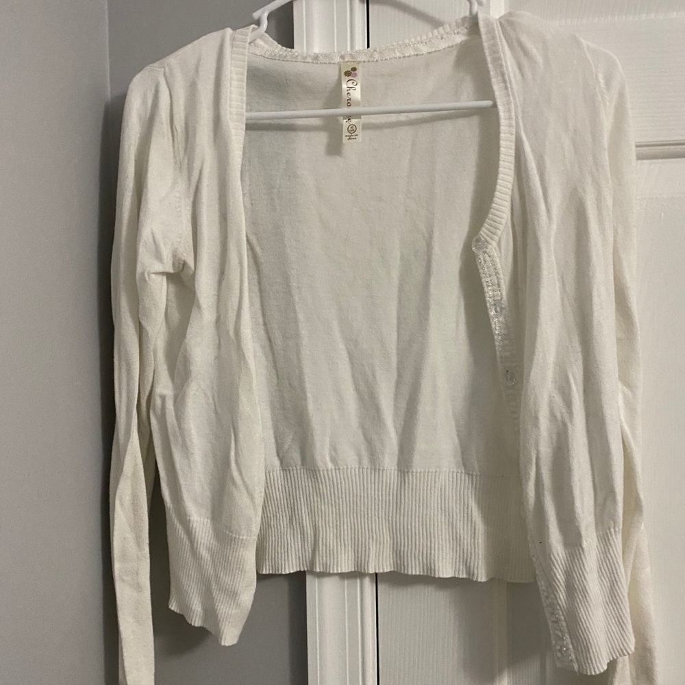 Basic white sweater. Kids extra large (14/16) but fits as a women’s small. In great condition