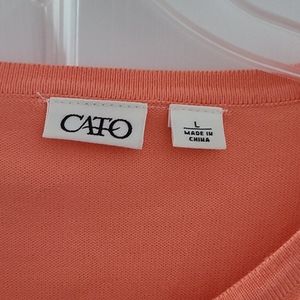 Coral/peach cardigan. Cato size large. It compliments the Cato dress I have posted on here very well. Not worn more than twice.