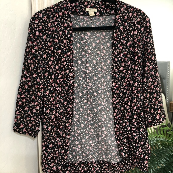 Cute floral lightweight cardigan perfect for spring! with two pockets, 3/4 quarter sleeves, and lightweight fabric.