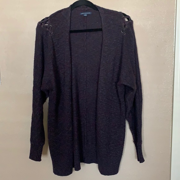American Eagle Purple cardigan with lace up detail on shoulders Size small but fits like as medium