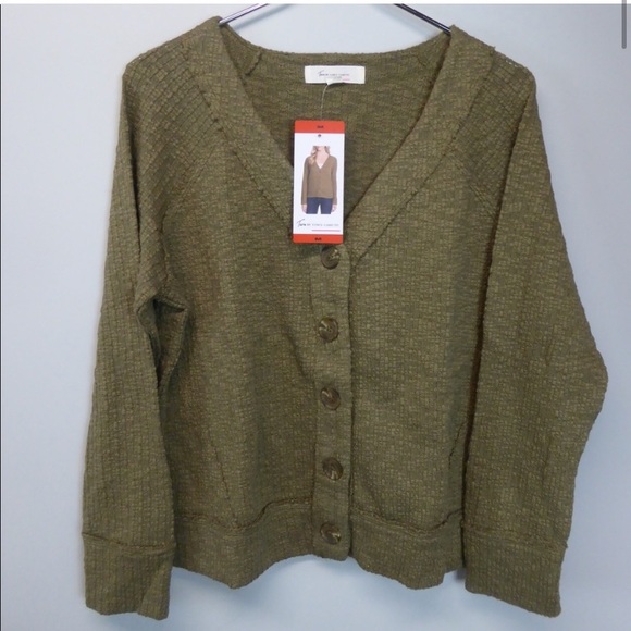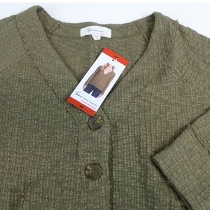 Olive green cropped button-down cardigan. Size Medium, NWT