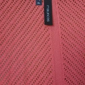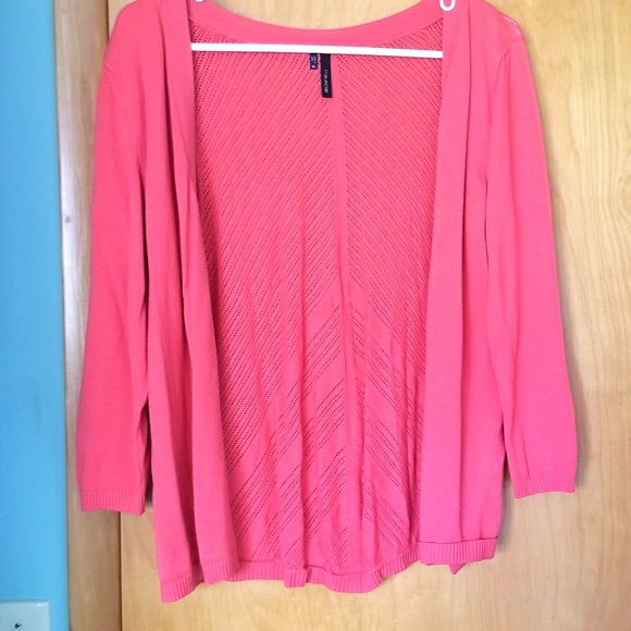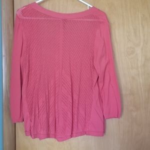 Very pretty coral/pink cardigan. Light weight with fun see through pattern on the back. 3/4 length sleeves