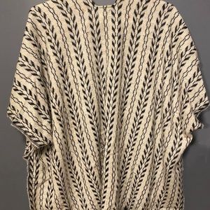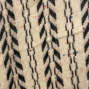 Super cute & cozy, soft white material,White& Black striped/design, lots of different colored thread specs thru out-tried to show in pics.Never worn.No size- fits like Medium/Large closer to fitting like a Large