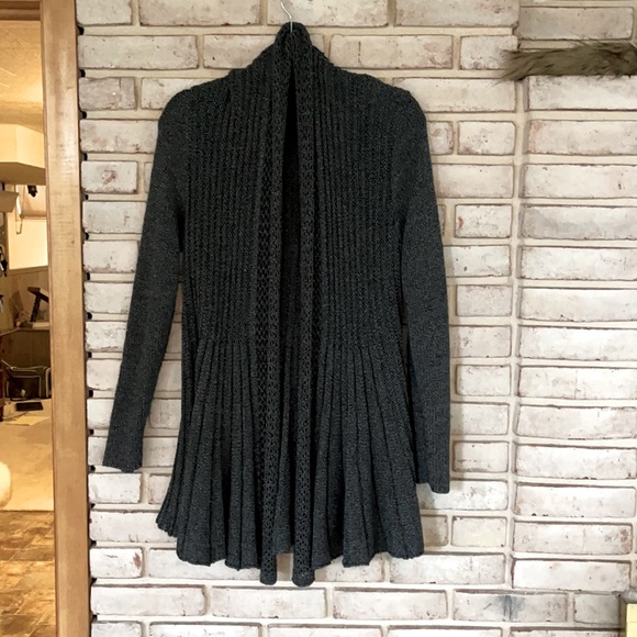 Long sleeve blue cardigan. Stretchy material. Soft fabric. Blue gray color