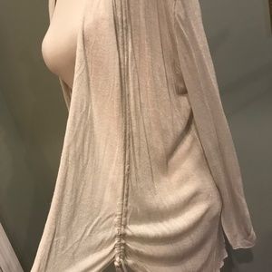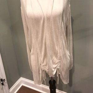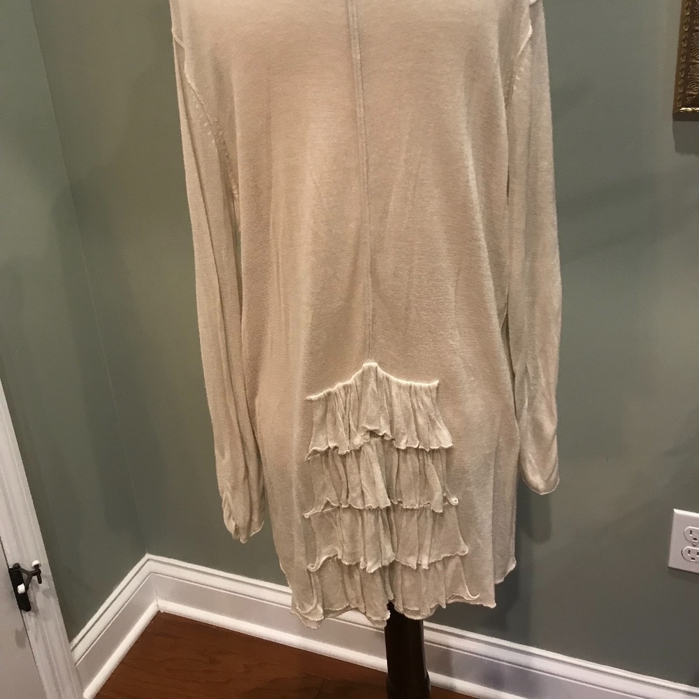 Ruffle and Ratchet Accents make this Cardigan Elegantly Unusual, Sheer Cream Color