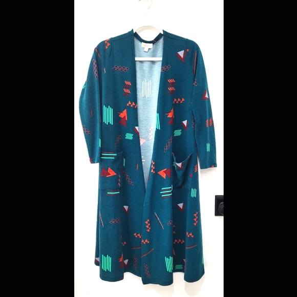 long duster, Aztec print, pockets, open front
