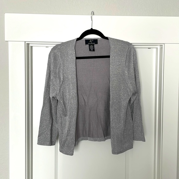 Silver Lennie for Nina Leonard cardigan. Single eye hook closure.