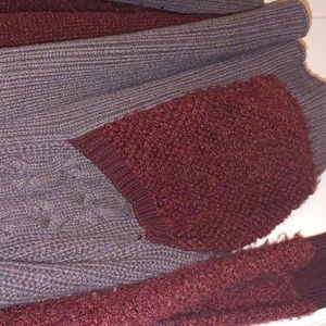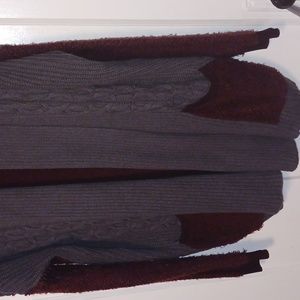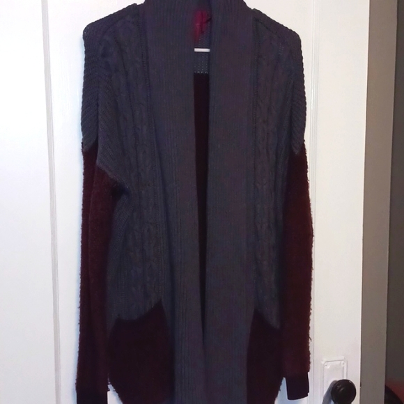 So where do I even start with this beautiful cardigan! It's super warm, unique, very pretty, has pockets, colors are awesome. Grey and burgundy and the fabrics are mixed. They Grey is like a sweater material and the burgundy is soft and cozy I'm honestly not sure how to describe that tho. Just really pretty and always got me tons of compliments! Size small but runs a little bigger. I'm a large and it fit me perfectly 🥰
