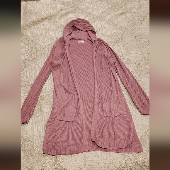 Cardigan. Long with pockets and Hoodie. Perfect for layering. Perfect for the office or lounging around. Soft and comfortable.