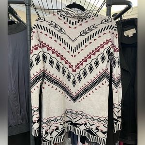 Super soft and cute cardigan for the fall. Only selling because it doesn’t fit me anymore. White with burgundy and black design