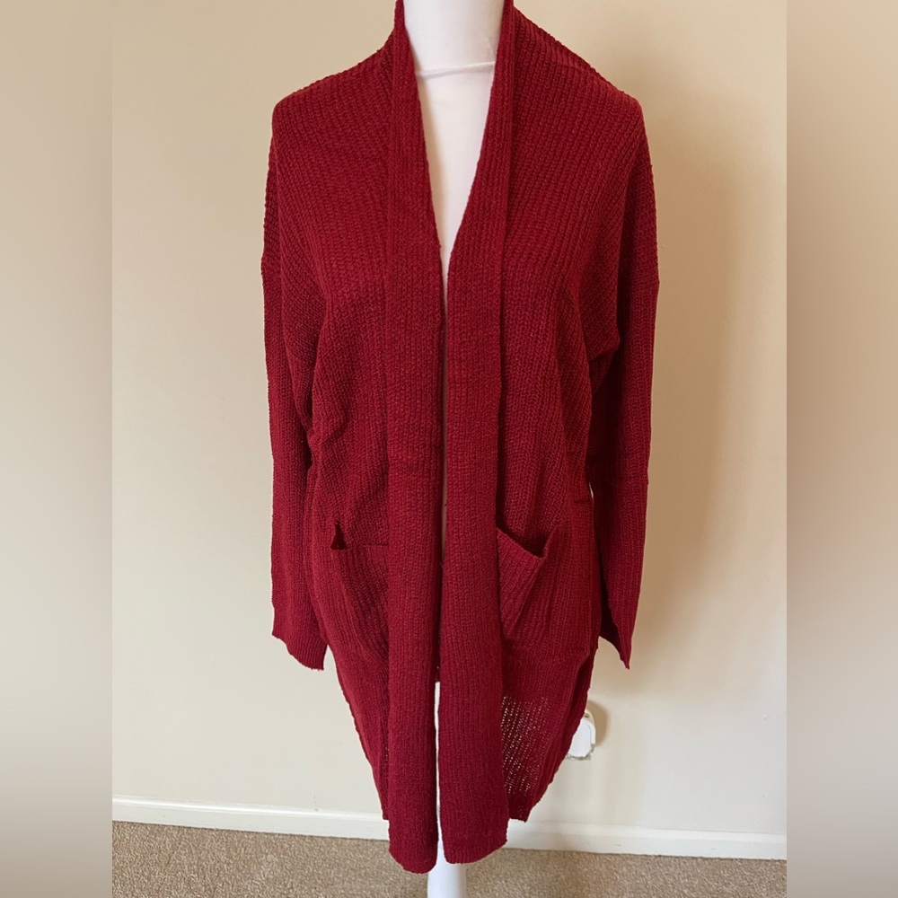 New never worn. Fantastic Fawn- Large Burgundy cardigan