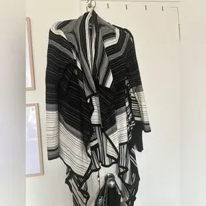 Black and white mixed stripe shawl cardigan