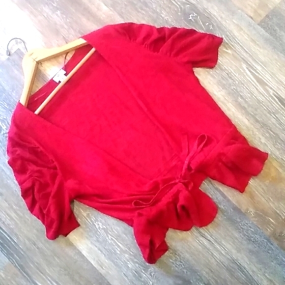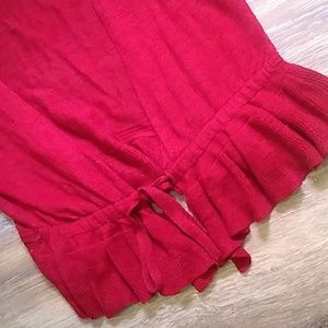 Red front tie ruffled cardigan