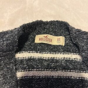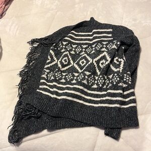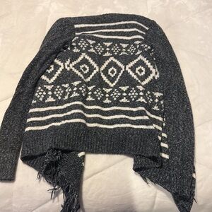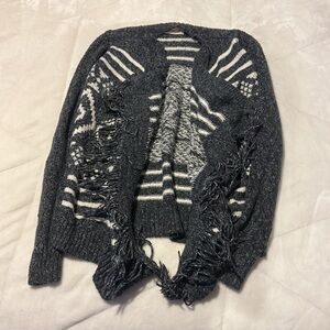 Navy cardigan with white design all over and fringe in the front. Heavy material to keep you warm. Size XS from Hollister