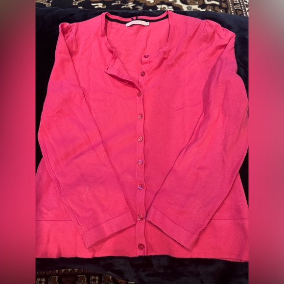 John Lewis cardigan. Women’s size 10. Pink fabric and pink buttons. Soft material. Great condition.