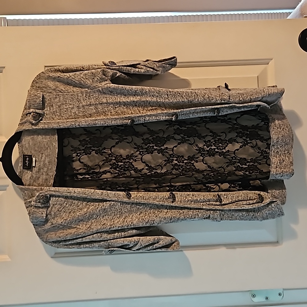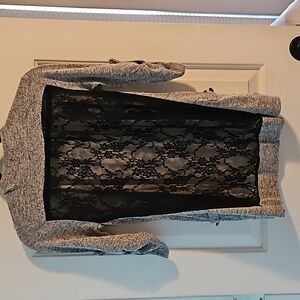 Daytrip quarter length sleeve cardigan. grey with black flower sheer material on the back. only wore a couple times. Daytrip brand