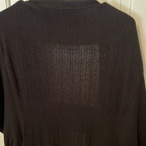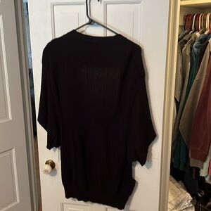 Black mid length sleeve cardigan. Pockets, no buttons.