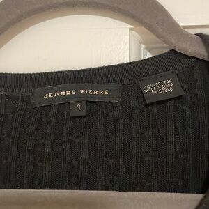 Black cable, net button, front cardigan, very good shape, 100%. Size small, yet fits more like a medium.