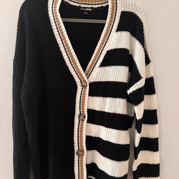 Cute boyfriend cardigan. Varsity stripe trim, size large, like New