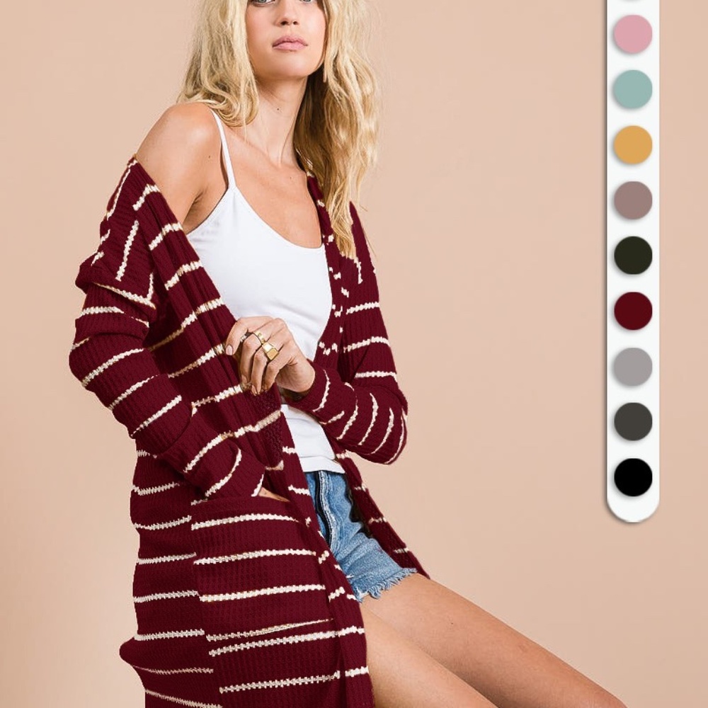 Open knit burgundy cardigan by BiBi- great transition from winter to spring. True to size