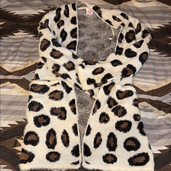 Soft fuzzy cheetah cardigan. Has pockets.