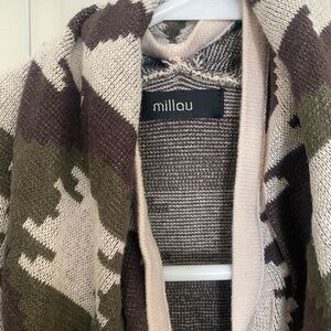 Aztec print cardigan with open front and 3/4 sleeves