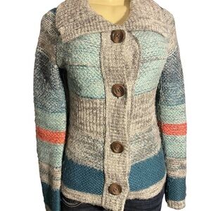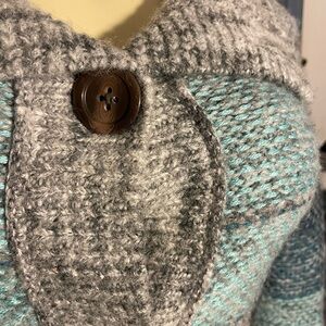 Blue and grey striped button-up cardigan #stripedcardigan #cardigan #preppy #retro