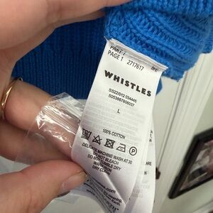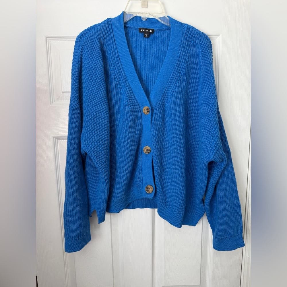 Size large blue button up Whistles cardigan sweater. Material is 100% cotton.