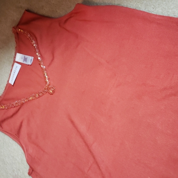 This listing is for a beautifully beaded shell & button down cardigan combo. Funny thing is, they match almost perfectly together, however the cardigan is Jones New York & the beaded shell is from Elizabeth. They look fantastic together.