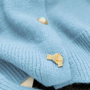 Cardigan Crew Neck Beaded Button Front Long Sleeve Blue