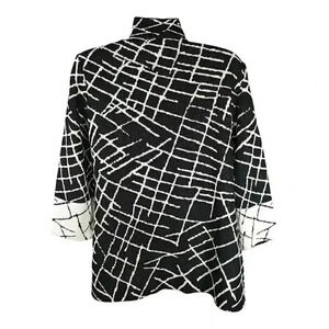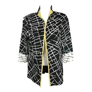 The Cardigan Jacket by Ming Wang is a versatile layering fashion piece for women. Made of polyester and acrylic, this tight-knit cardigan features a mock neck and 3/4 sleeves with a regular sleeve type. It is available in XS size and black/white color. This unlined jacket has a regular fit and measures 25" in length with a pit to pit measurement of 18". It can be machine or hand washed and is suitable for casual and business occasions.