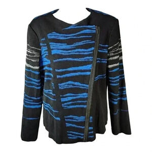 Elevate your outfit with this versatile cardigan jacket by Ming Wang. Made of a blend of polyester and acrylic, this tight-knit striped jacket features a crew neckline, full zipper, and long sleeves. Perfect for any occasion, whether it's casual or business, this jacket can be layered with ease. The multicolor jacket with regular sleeves and a regular fit is available in PM size for petites. Easy to care for, this unlined cardigan can be machine washed or hand washed, making it a low-maintenance addition to your wardrobe. Don't miss out on this classic knit jacket that is sure to become a staple in your closet.