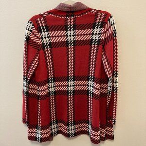 Leo & Nicole Red Black Plaid Cardigan Sweater Soft Comfy Open Front Size Petite Small