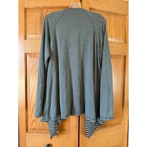 Cardigan Long Sleeve Reversible Size Large - No tag, no brand. It is blue and white striped on one side and soft gray on the other. It is not light weight. See measurements for accurate sizing.