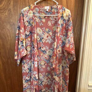 Brighten up your wardrobe with this ultra-feminine open-front kimono featuring a lively floral print in shades of pink, blue, white, and yellow on a soft blush background, this lightweight, sheer layer flows effortlessly for a flattering fit. With loose sleeves and a relaxed cut, it’s the perfect piece for warm weather, vacations. Size:M Condition:NEW