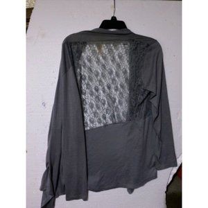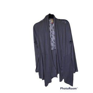 Cardigan No Boundaries waterfall open knit grey sweater size XL lace back