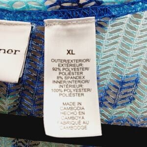 Alfred Dunner cardigan, blue floral sweater, women’s XL cardigan, lightweight knit sweater, stretch layering piece, bold flower print, poly spandex top, easy travel wear