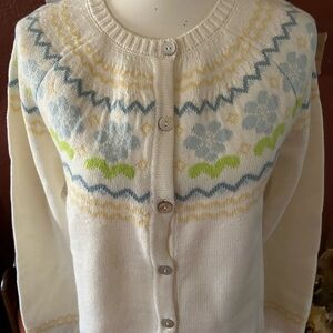 Cardigan Sweater Beautiful Flower Print Yellow and Blue No Size Please See Desc