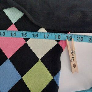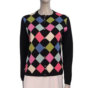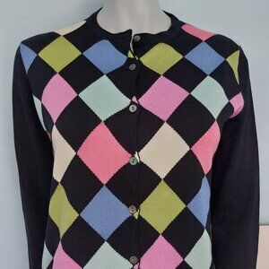 Cardigan Sweater Black Argyle Large Long Sleeves Colorful Preppy Classy Silk EUC